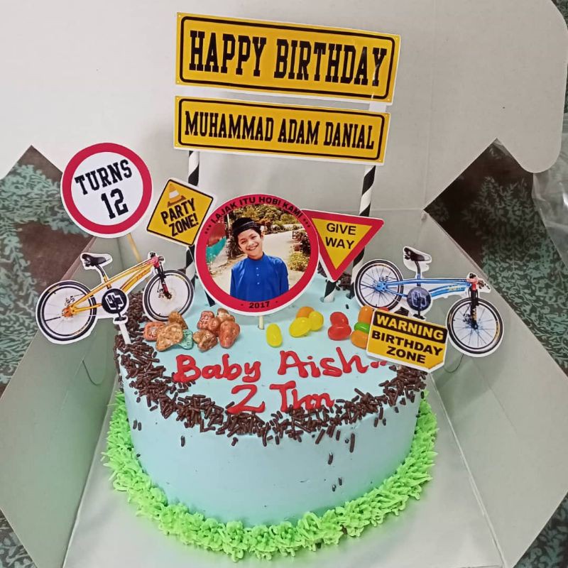 Custom Name Happy Birthday Cake Topper Basikal Lajak Bicycle Kids Decoration Kek Printed Set Party Majlis Hari Jadi Shopee Malaysia